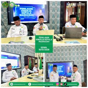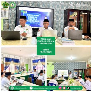 Penilaian kinerja ini dilakukan oleh tim penilai Pengawas Madrasah (H. Syafrudin,S.Pd.I.,M.Pd dan H. Basri, S.Pd., M.Si), dengan menilai berbagai aspek, antara lain manajerial, kewirausahaan, supervisi akademik, serta pengembangan madrasah. Proses penilaian mencakup pemeriksaan dokumen administrasi, pemaparan program kerja, serta wawancara dan klarifikasi data pendukung.